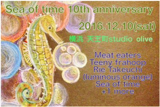 ライブが決まってから初のスタジオ。 とりあえず告知。 2016.12.10 [SAT] STUDIO OLIVE (YOKOHAMA) Sea of time 10th anniversary 時間未定 with / Sea of time Meat eaters Rie Takeuchi (luminous orange) and more... at STUDIO OLIVE http://www.olive24.com/access.html ティニフラのスタジオは 毎回誰かが遅刻するのが通例になってます。 今日はたっこさんから連絡があり 「カミナリが怖いので遅刻します」 理由がななめ上でした。 実際に今日の都内は一時的にカミナリすごかったですけどね。 で、ぐんちゃんとスタジオで会ったらば第一声が 「腕っぷし強くなった?」 どうやら私の二の腕がたくましくなったことを指しているようですが 1か月ぶりに会ってそれかい。 でもお土産いっぱいくれました ぐんちゃんは太っ腹です。 一番痩せてるのに(多分) 練習後、HPを編集するので居残りしました。 HP担当はぐんちゃんです。 実際にぐんちゃんのみが仕事し、 私は横でたこ焼き食べてました。 GIGSとGOODSのところが更新になってます。 http://teenyfrahoop.nobody.jp/ Tシャツ秋物用意しました。 ライブで物販しますが、そのうち通販できるようにもする予定です。 年末のライブに向けて頑張ります! ヨシコ |